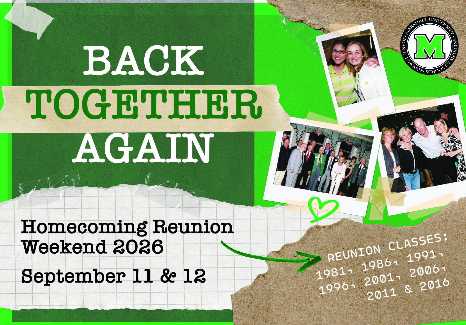 Join us September 11-12, 2026, as we "Get Back Together Again" for the Marshall University Joan C. Edwards School of Medicine’s 39th Annual Homecoming Weekend.